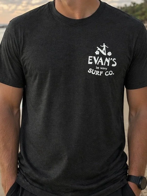 Soft, stylish, and designed for everyday wear, this is a must-have tee that represents the heart of Evan’s Surf Co.